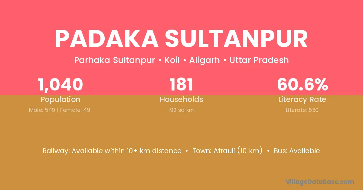 Atrauli (10 km) is the nearest town to Padaka Sultanpur village for major economic activities and is located approximately 10 km away.