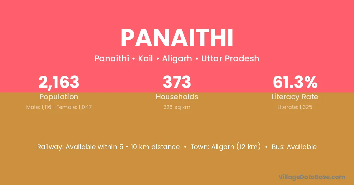 Aligarh (12 km) is the nearest town to Panaithi village for major economic activities and is located approximately 12 km away.