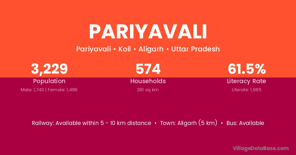 Aligarh (5 km) is the nearest town to Pariyavali village for major economic activities and is located approximately 5 km away.
