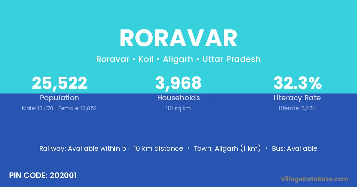 Aligarh (1 km) is the nearest town to Roravar village for major economic activities and is located approximately 1 km away.