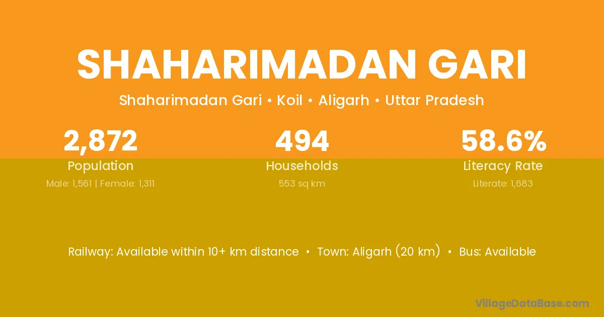 Aligarh (20 km) is the nearest town to Shaharimadan Gari village for major economic activities and is located approximately 20 km away.