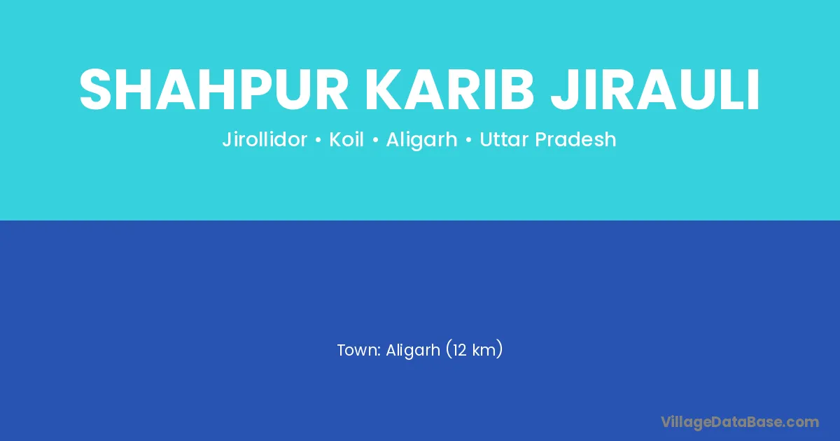 Aligarh (12 km) is the nearest town to Shahpur Karib Jirauli village for major economic activities and is located approximately 12 km away.
