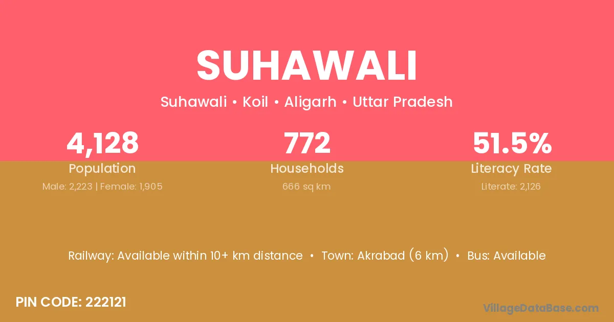 Akrabad (6 km) is the nearest town to Suhawali village for major economic activities and is located approximately 6 km away.