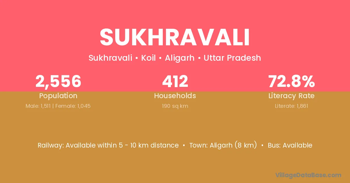 Aligarh (8 km) is the nearest town to Sukhravali village for major economic activities and is located approximately 8 km away.