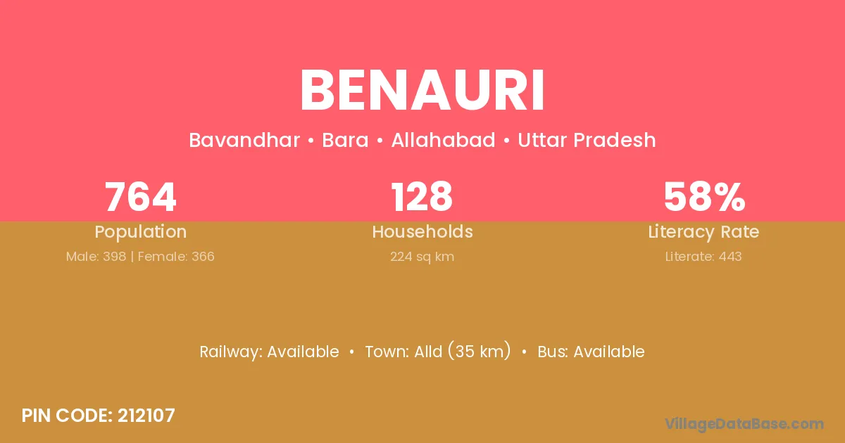 Alld (35 km) is the nearest town to Benauri village for major economic activities and is located approximately 35 km away.