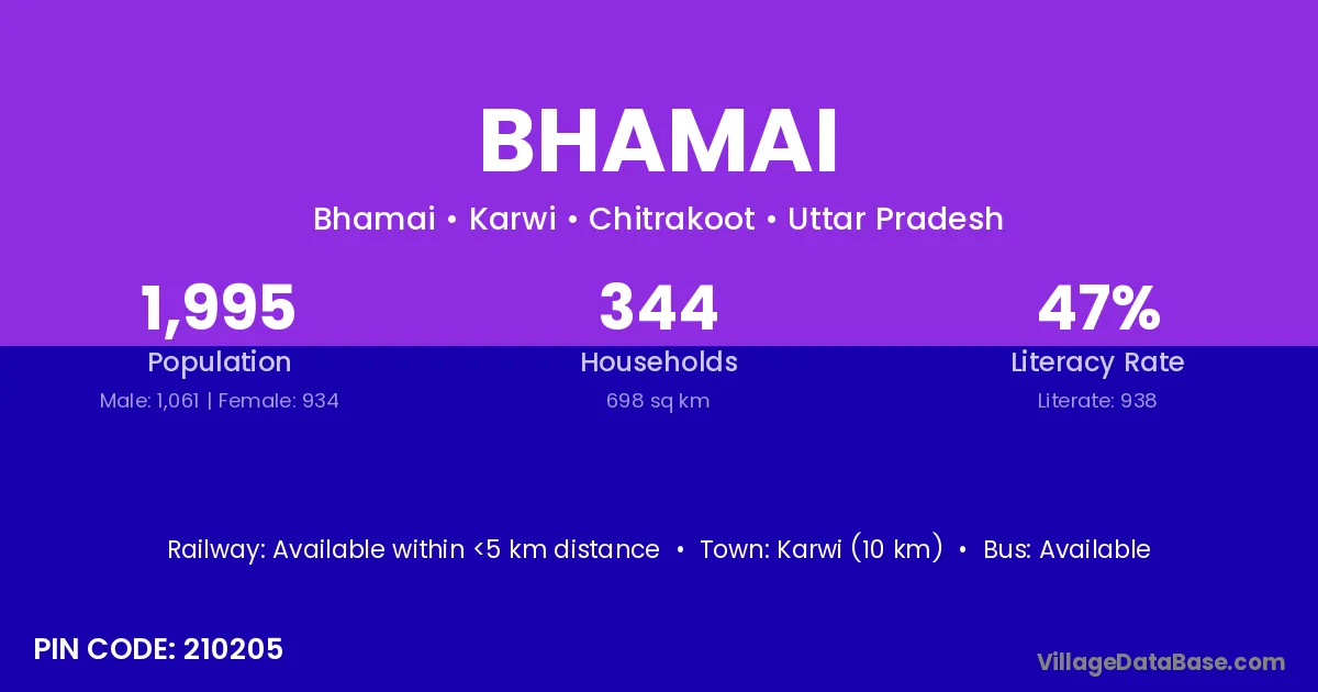 Alld (26 km) is the nearest town to Bhamai village for major economic activities and is located approximately 26 km away.