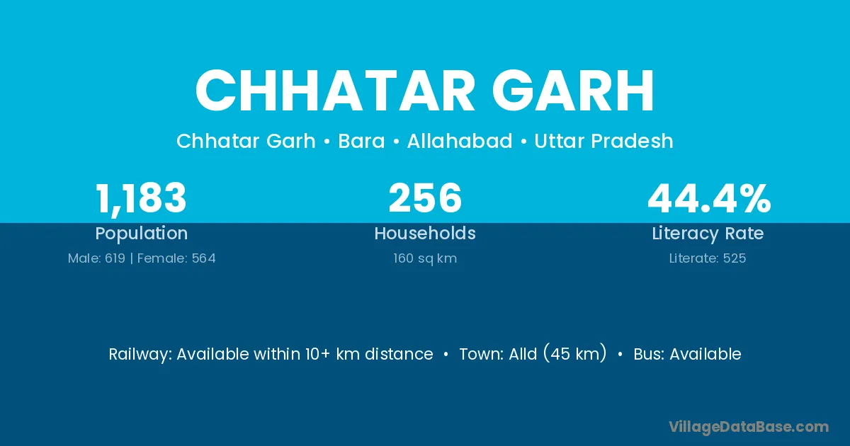 Alld (45 km) is the nearest town to Chhatar Garh village for major economic activities and is located approximately 45 km away.