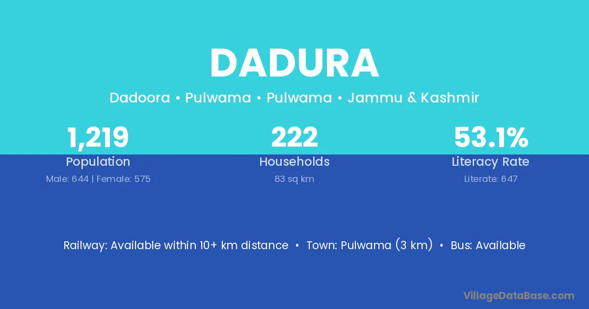 Alld (34 km) is the nearest town to Dadura village for major economic activities and is located approximately 34 km away.