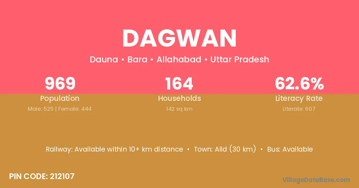 Dagwan village has a total population of 969 people, of which 525 are males and 444 are females.