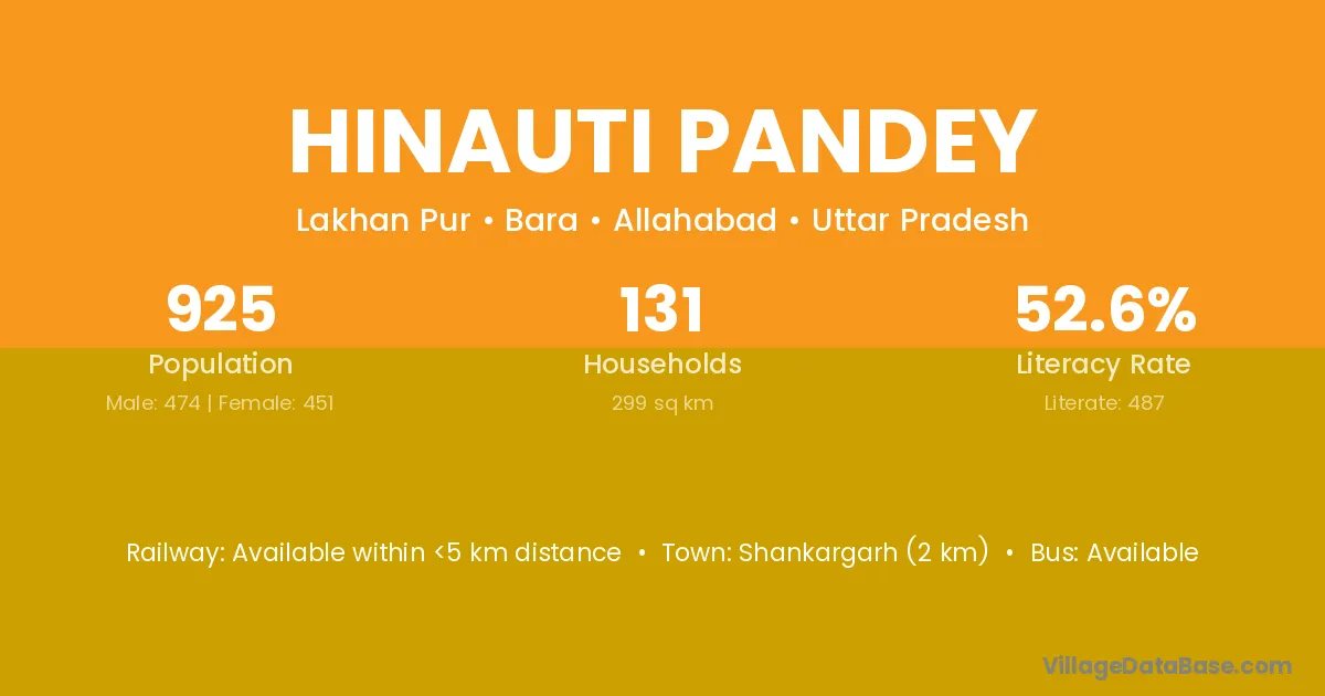 Shankargarh (2 km) is the nearest town to Hinauti Pandey village for major economic activities and is located approximately 2 km away.