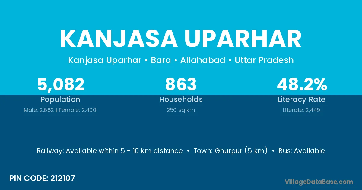 Ghurpur (5 km) is the nearest town to Kanjasa Uparhar village for major economic activities and is located approximately 5 km away.