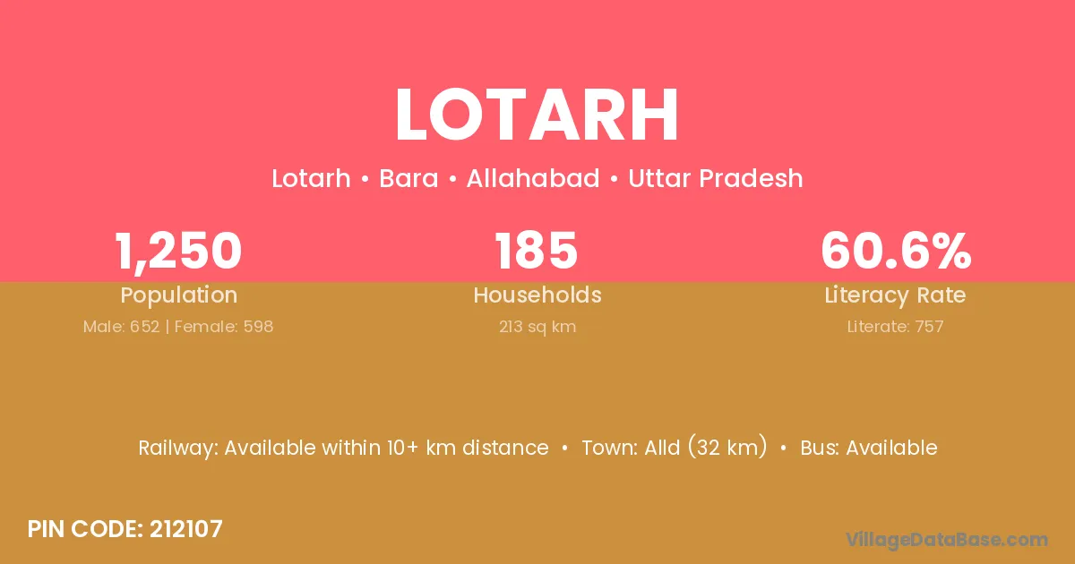 Lotarh village has a total population of 1,250 people, of which 652 are males and 598 are females.