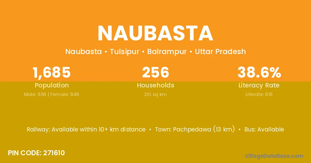 Alld (59 km) is the nearest town to Naubasta village for major economic activities and is located approximately 59 km away.