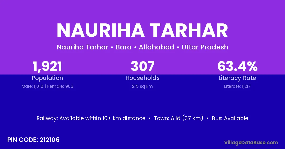 Alld (37 km) is the nearest town to Nauriha Tarhar village for major economic activities and is located approximately 37 km away.