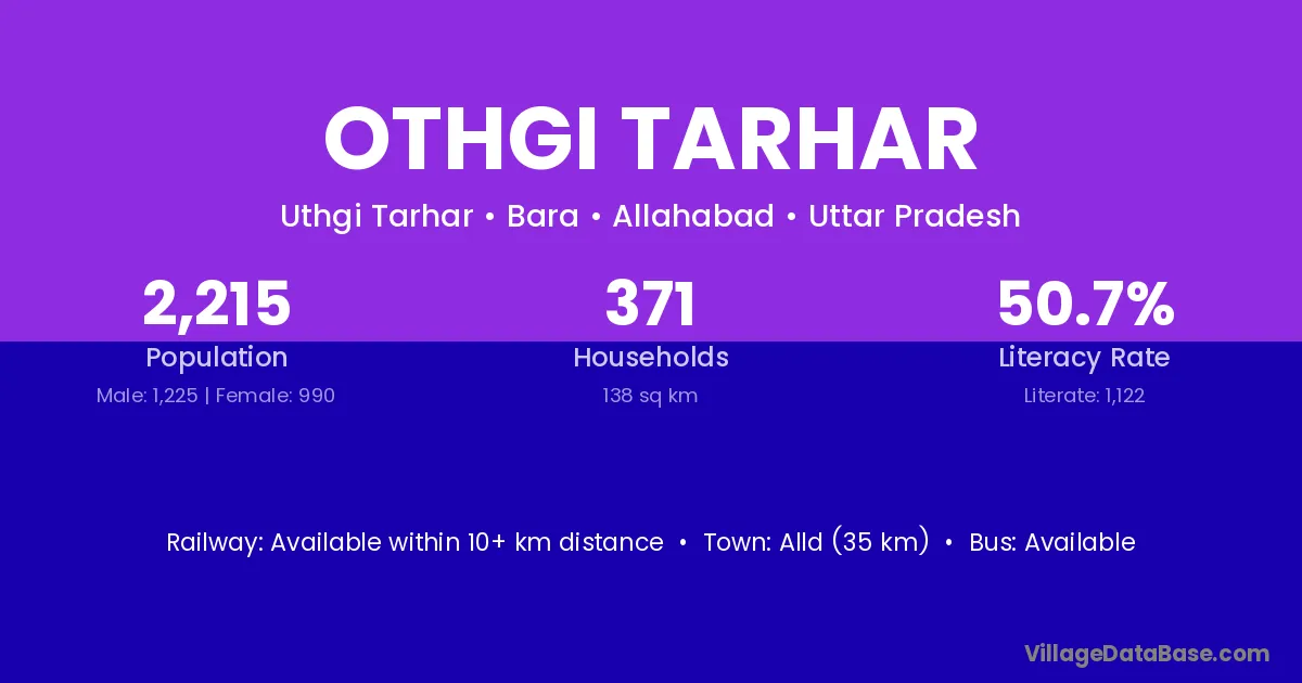 Othgi Tarhar village has a total population of 2,215 people, of which 1,225 are males and 990 are females.