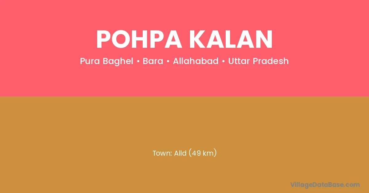 Alld (49 km) is the nearest town to Pohpa Kalan village for major economic activities and is located approximately 49 km away.