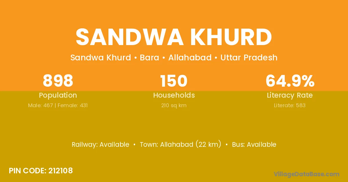 Allahabad (22 km) is the nearest town to Sandwa Khurd village for major economic activities and is located approximately 22 km away.