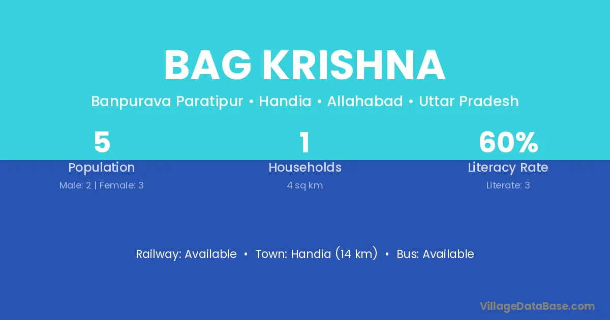 Handia (14 km) is the nearest town to Bag Krishna village for major economic activities and is located approximately 14 km away.