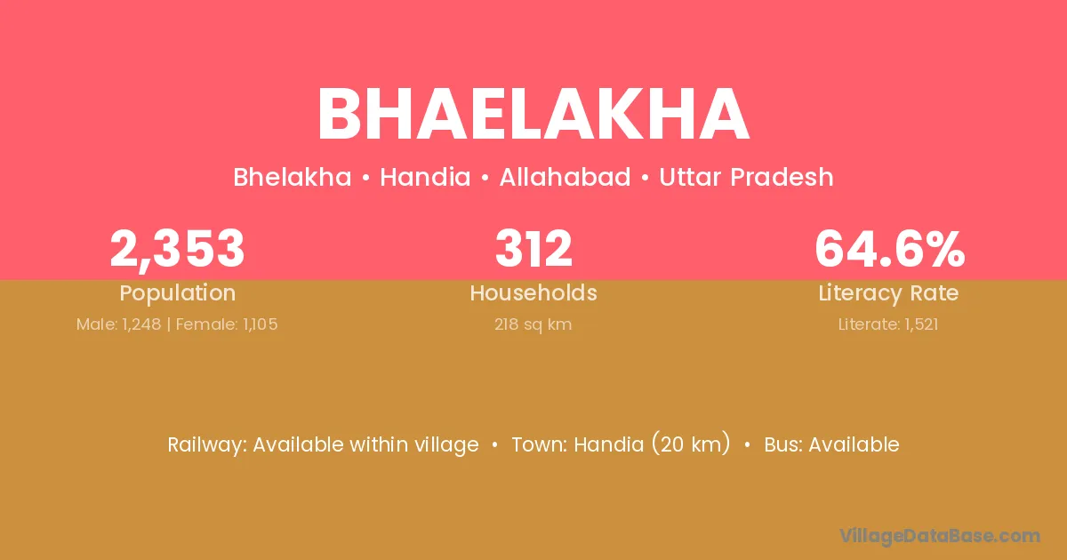 Handia (20 km) is the nearest town to Bhaelakha village for major economic activities and is located approximately 20 km away.