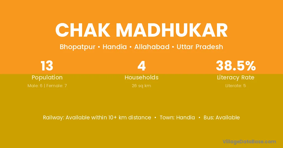 Handia is the nearest town to Chak Madhukar village for major economic activities