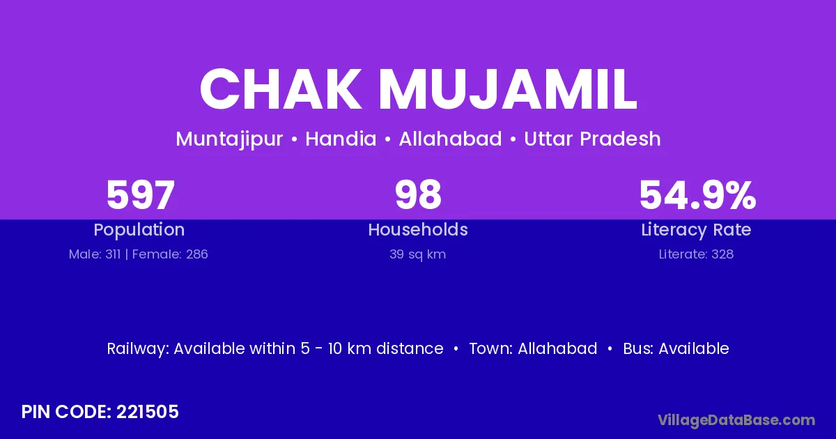 Allahabad is the nearest town to Chak Mujamil village for major economic activities