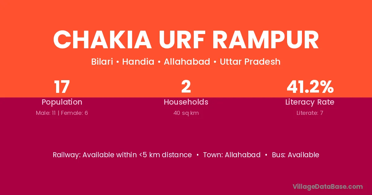 Chakia Urf Rampur village has a total population of 17 people, of which 11 are males and 6 are females.
