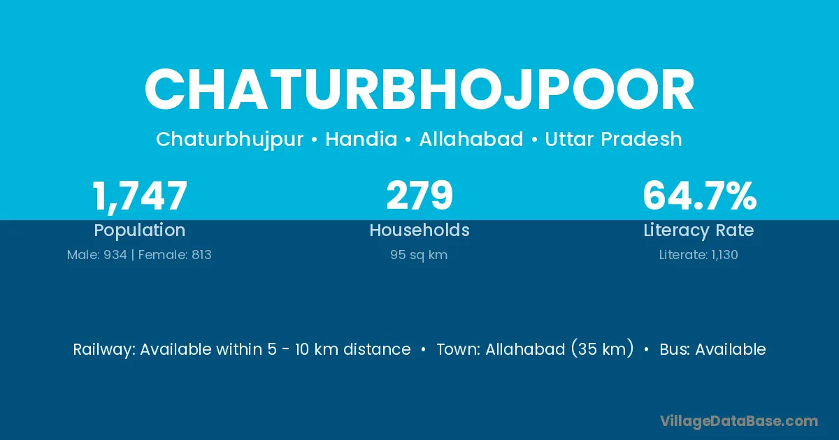 Allahabad (35 km) is the nearest town to Chaturbhojpoor village for major economic activities and is located approximately 35 km away.