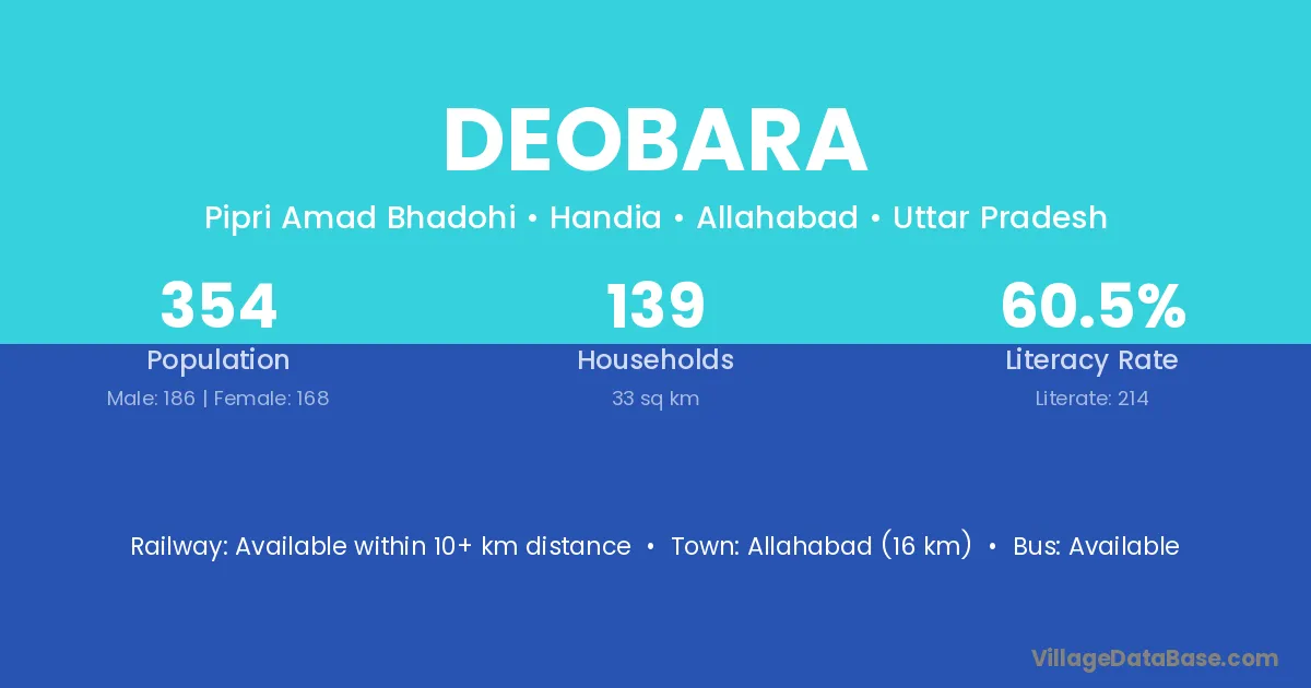 Allahabad (16 km) is the nearest town to Deobara village for major economic activities and is located approximately 16 km away.
