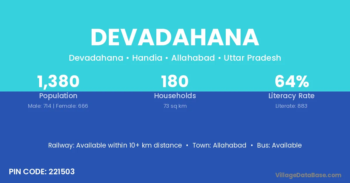 Devadahana village has a total population of 1,380 people, of which 714 are males and 666 are females.