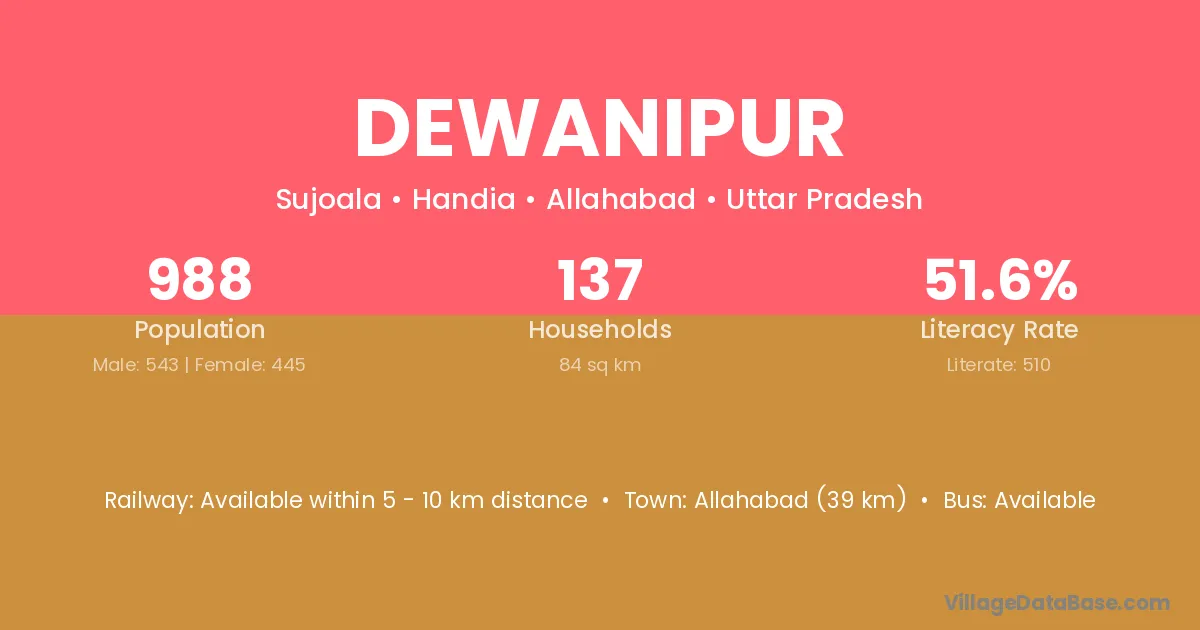 Allahabad (39 km) is the nearest town to Dewanipur village for major economic activities and is located approximately 39 km away.
