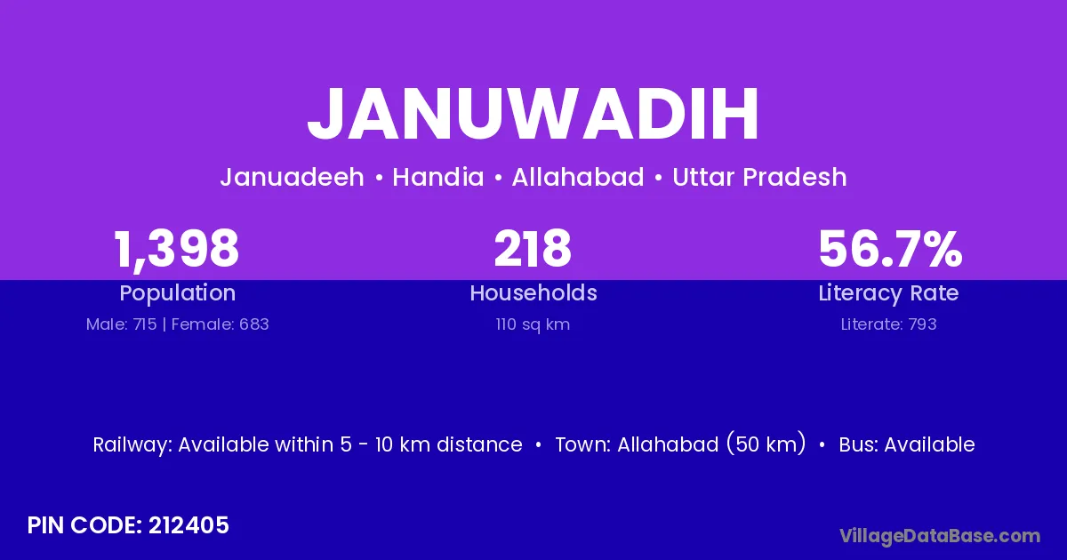 Allahabad (50 km) is the nearest town to Januwadih village for major economic activities and is located approximately 50 km away.