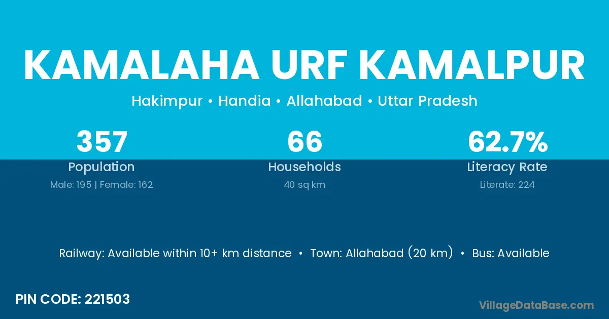 Allahabad (20 km) is the nearest town to Kamalaha Urf Kamalpur village for major economic activities and is located approximately 20 km away.