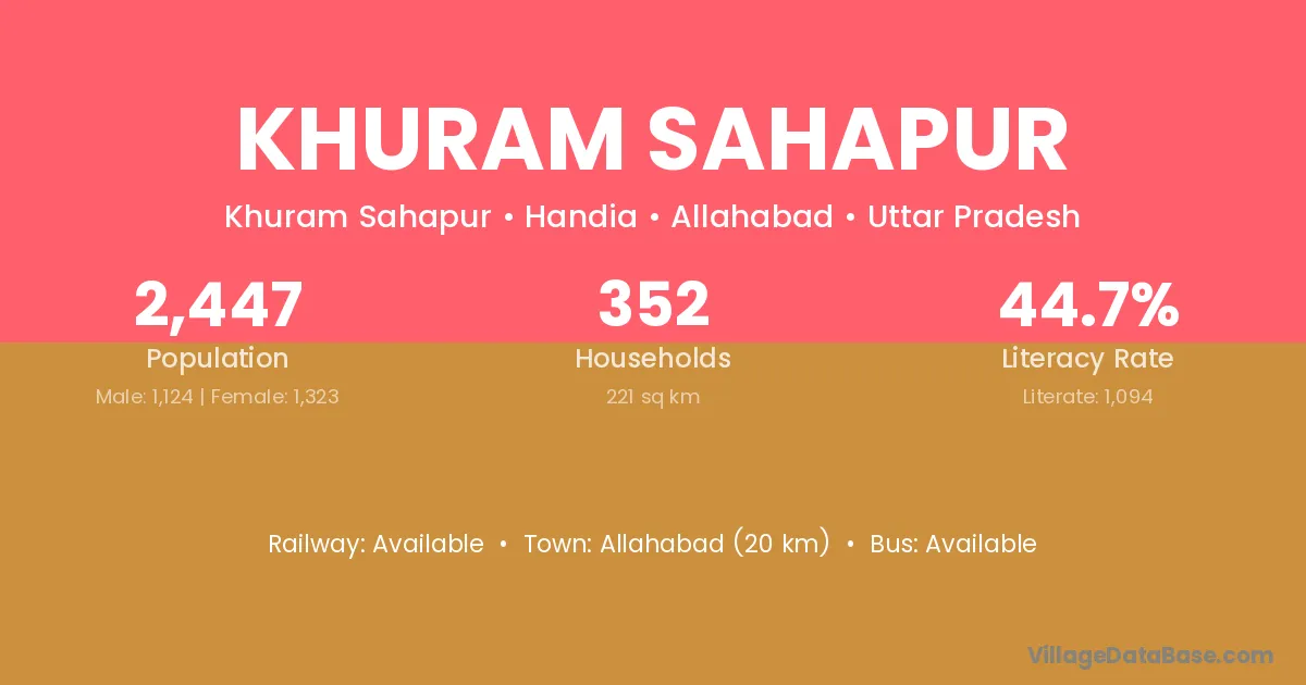Allahabad (20 km) is the nearest town to Khuram Sahapur village for major economic activities and is located approximately 20 km away.