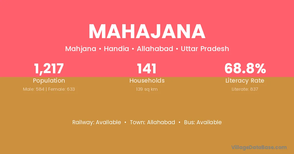 Mahajana village has a total population of 1,217 people, of which 584 are males and 633 are females.