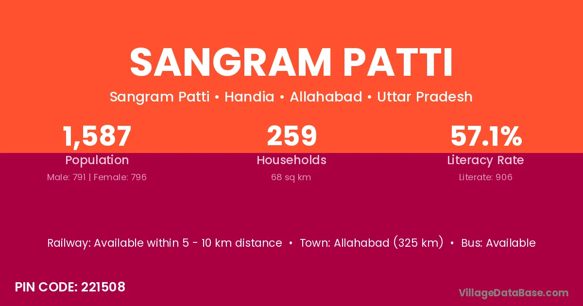 Allahabad (325 km) is the nearest town to Sangram Patti village for major economic activities and is located approximately 325 km away.