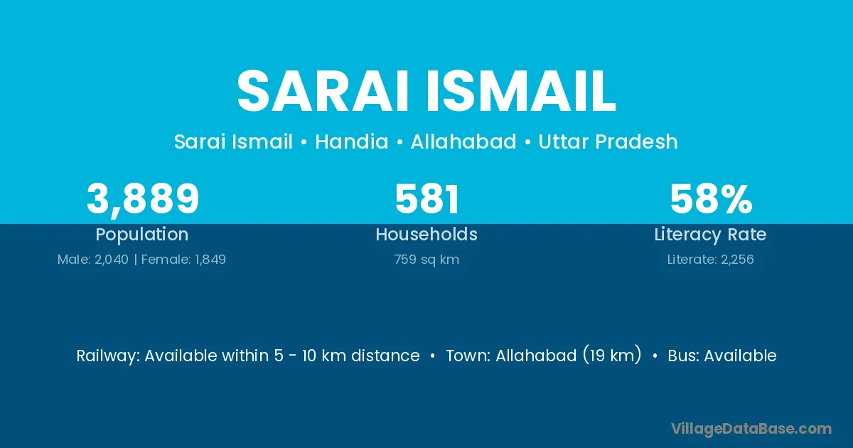 Allahabad (19 km) is the nearest town to Sarai Ismail village for major economic activities and is located approximately 19 km away.