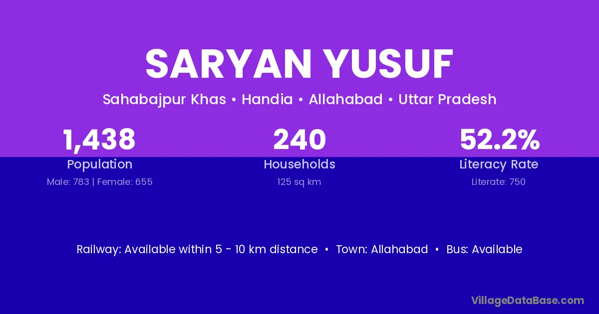 Allahabad is the nearest town to Saryan Yusuf village for major economic activities