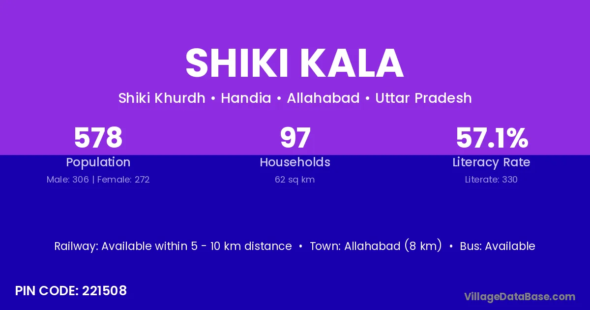 Allahabad (8 km) is the nearest town to Shiki Kala village for major economic activities and is located approximately 8 km away.