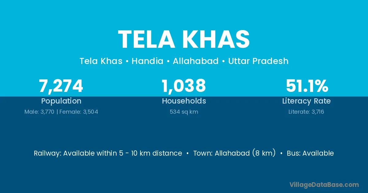Allahabad (8 km) is the nearest town to Tela Khas village for major economic activities and is located approximately 8 km away.