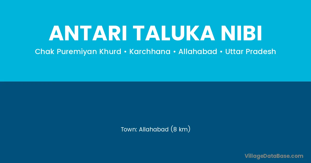 Allahabad (8 km) is the nearest town to Antari Taluka Nibi village for major economic activities and is located approximately 8 km away.