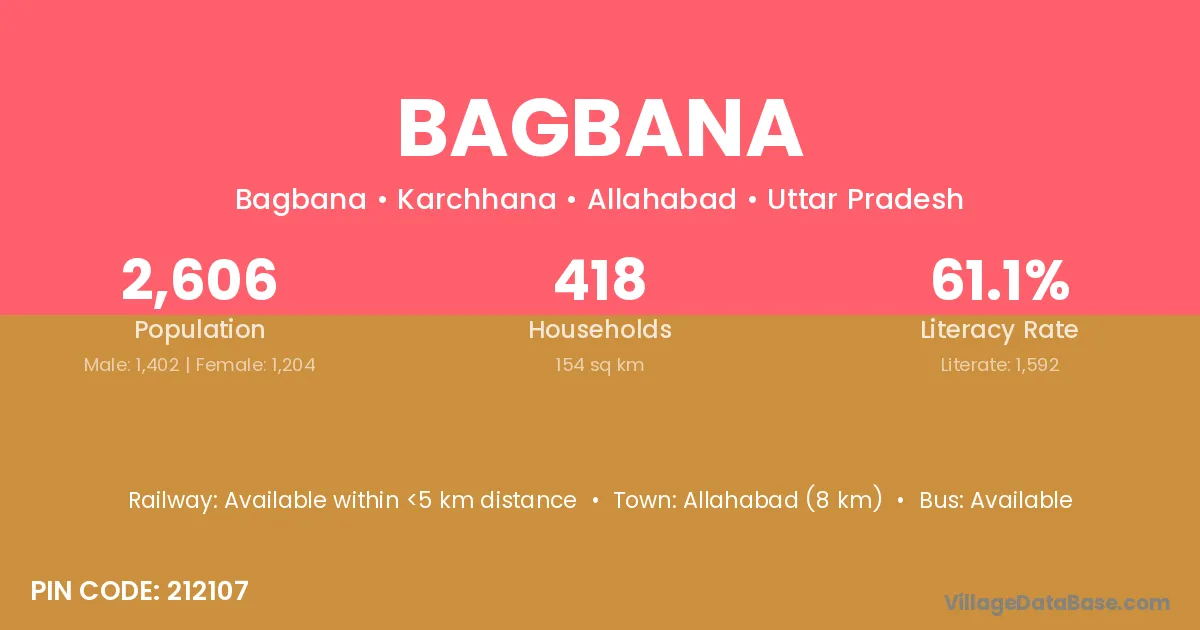 Allahabad (8 km) is the nearest town to Bagbana village for major economic activities and is located approximately 8 km away.
