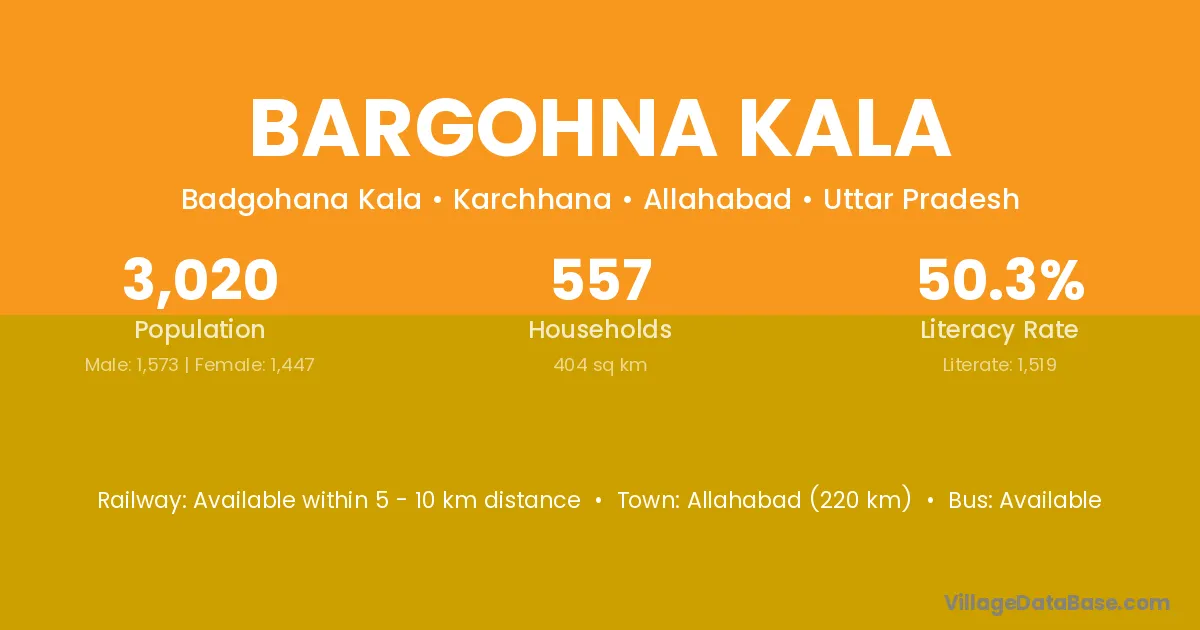 Allahabad (220 km) is the nearest town to Bargohna Kala village for major economic activities and is located approximately 220 km away.