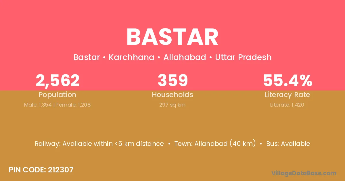 Allahabad (40 km) is the nearest town to Bastar village for major economic activities and is located approximately 40 km away.