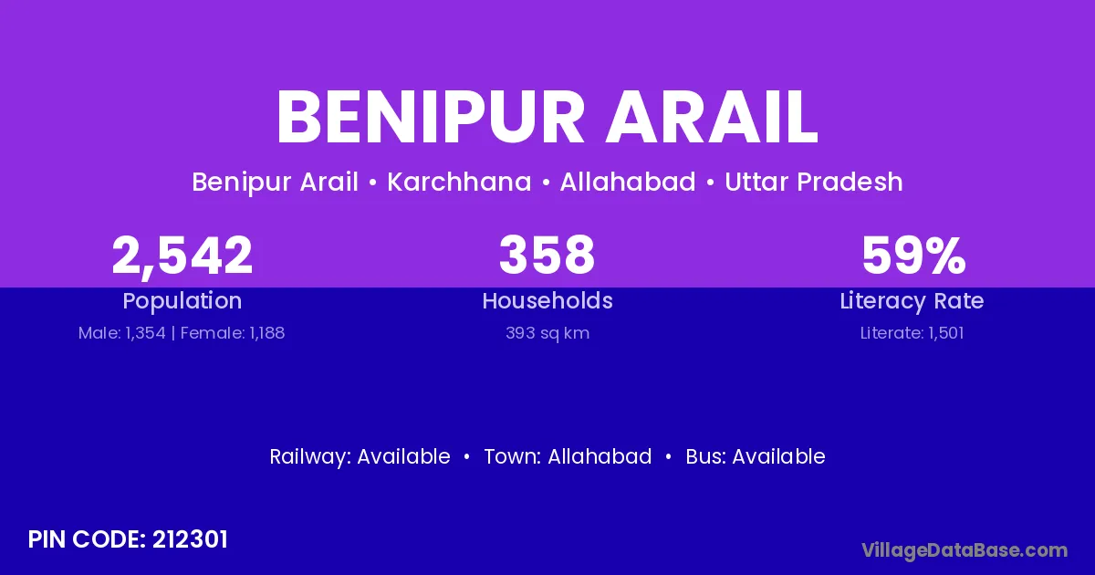 Allahabad is the nearest town to Benipur Arail village for major economic activities