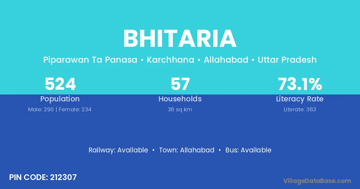 Allahabad is the nearest town to Bhitaria village for major economic activities