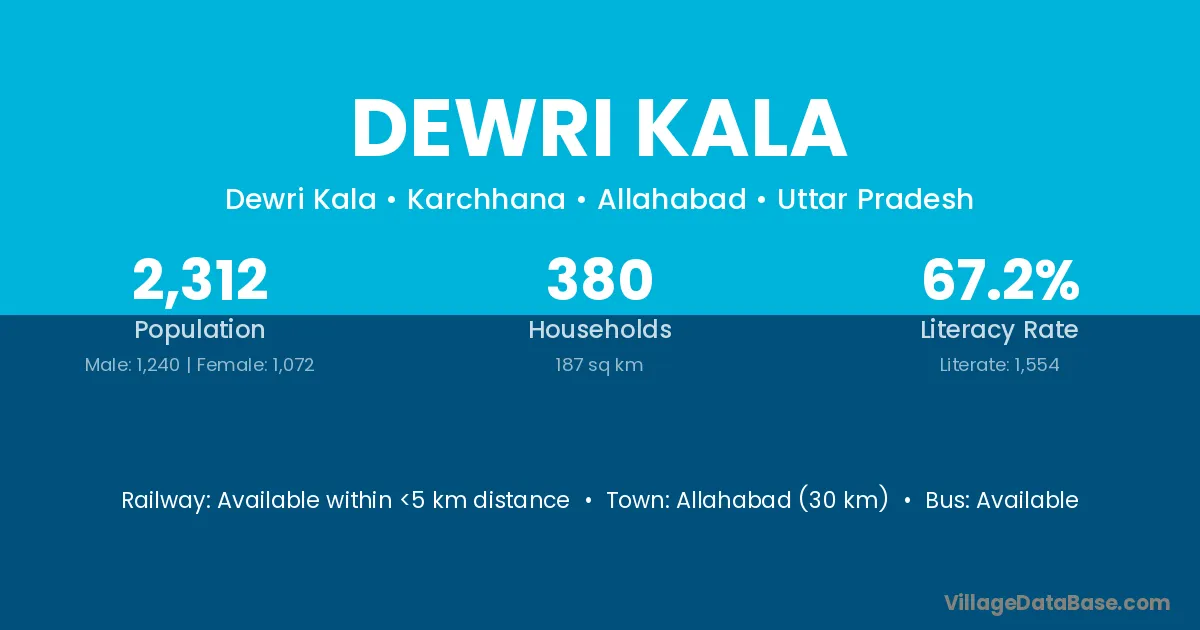 Allahabad (30 km) is the nearest town to Dewri Kala village for major economic activities and is located approximately 30 km away.