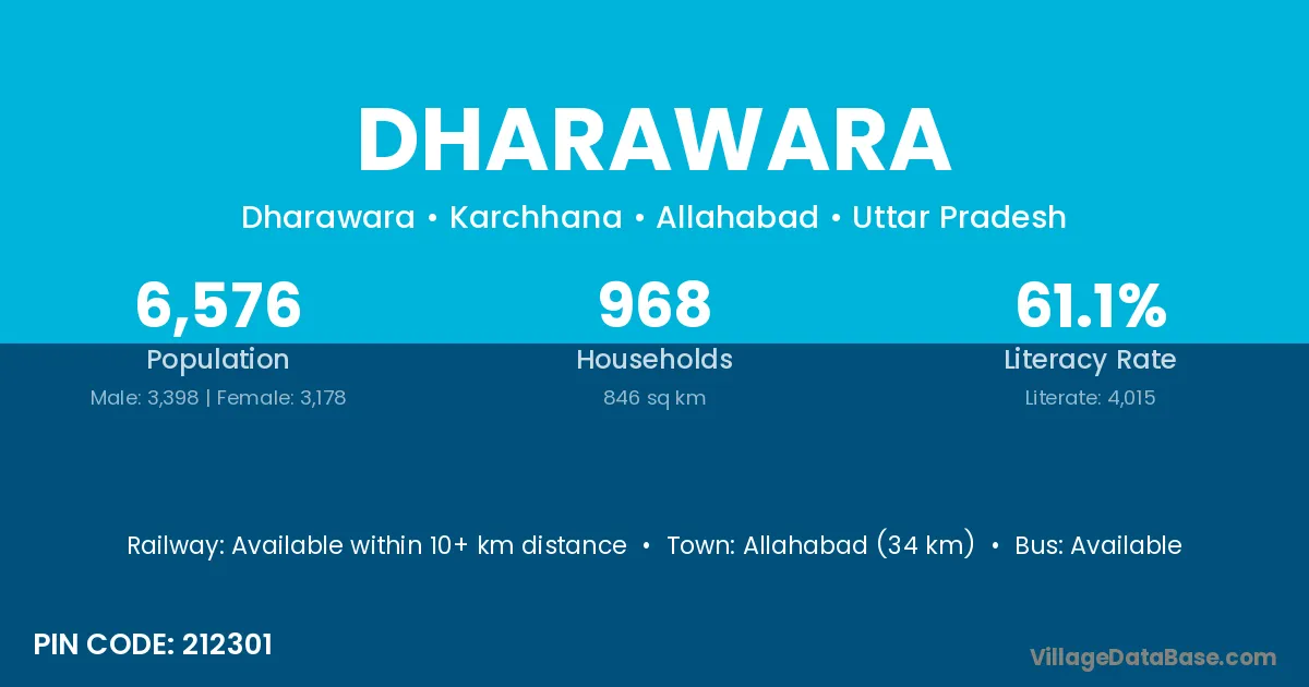 Allahabad (34 km) is the nearest town to Dharawara village for major economic activities and is located approximately 34 km away.