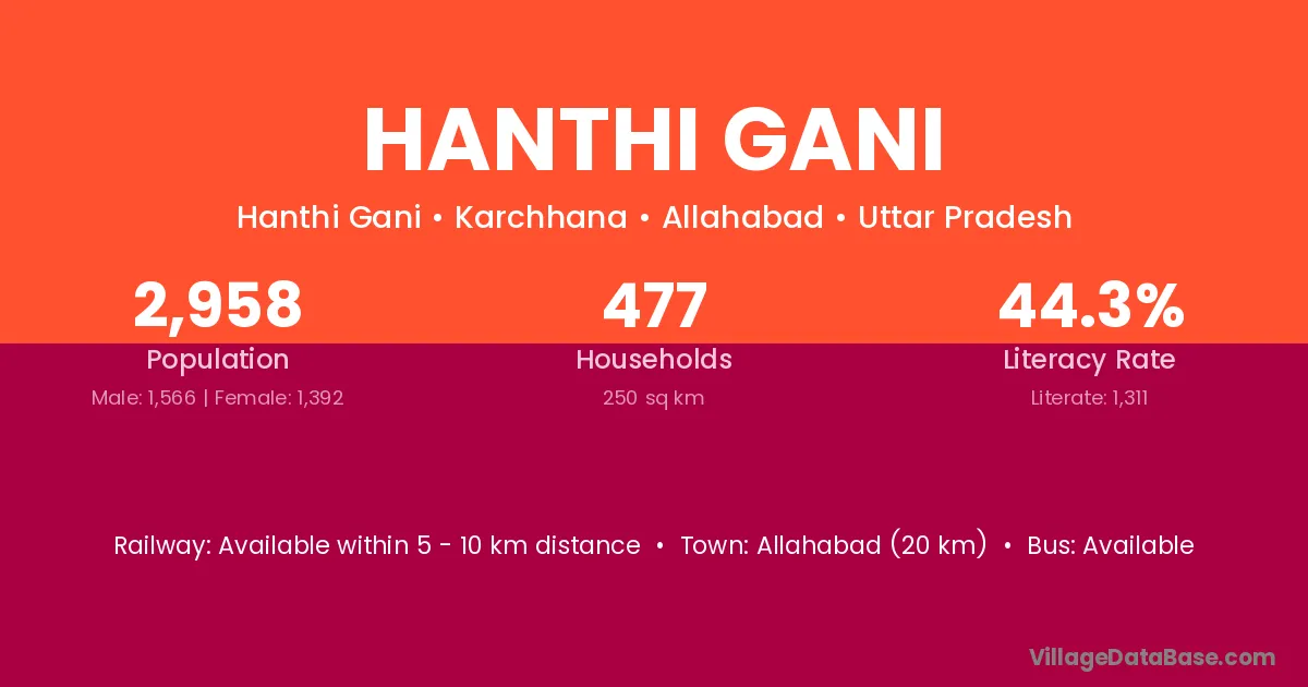Allahabad (20 km) is the nearest town to Hanthi Gani village for major economic activities and is located approximately 20 km away.