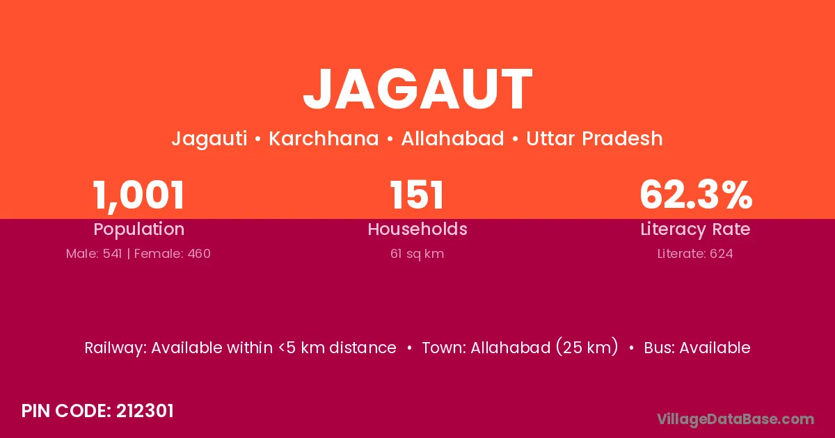 Allahabad (25 km) is the nearest town to Jagaut village for major economic activities and is located approximately 25 km away.