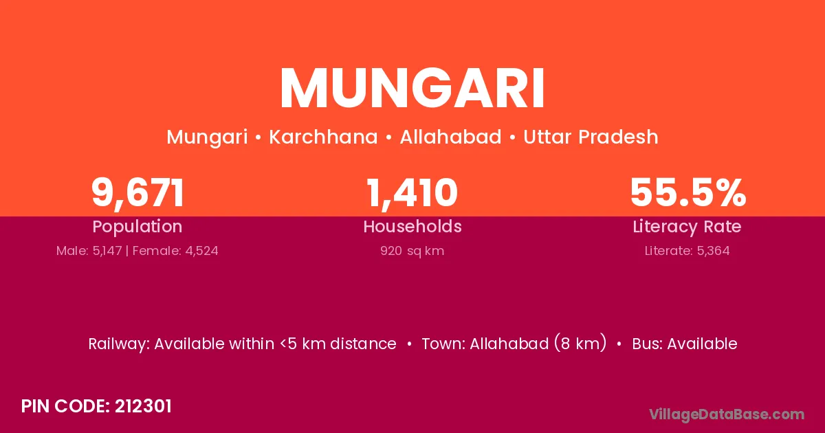 Allahabad (8 km) is the nearest town to Mungari village for major economic activities and is located approximately 8 km away.